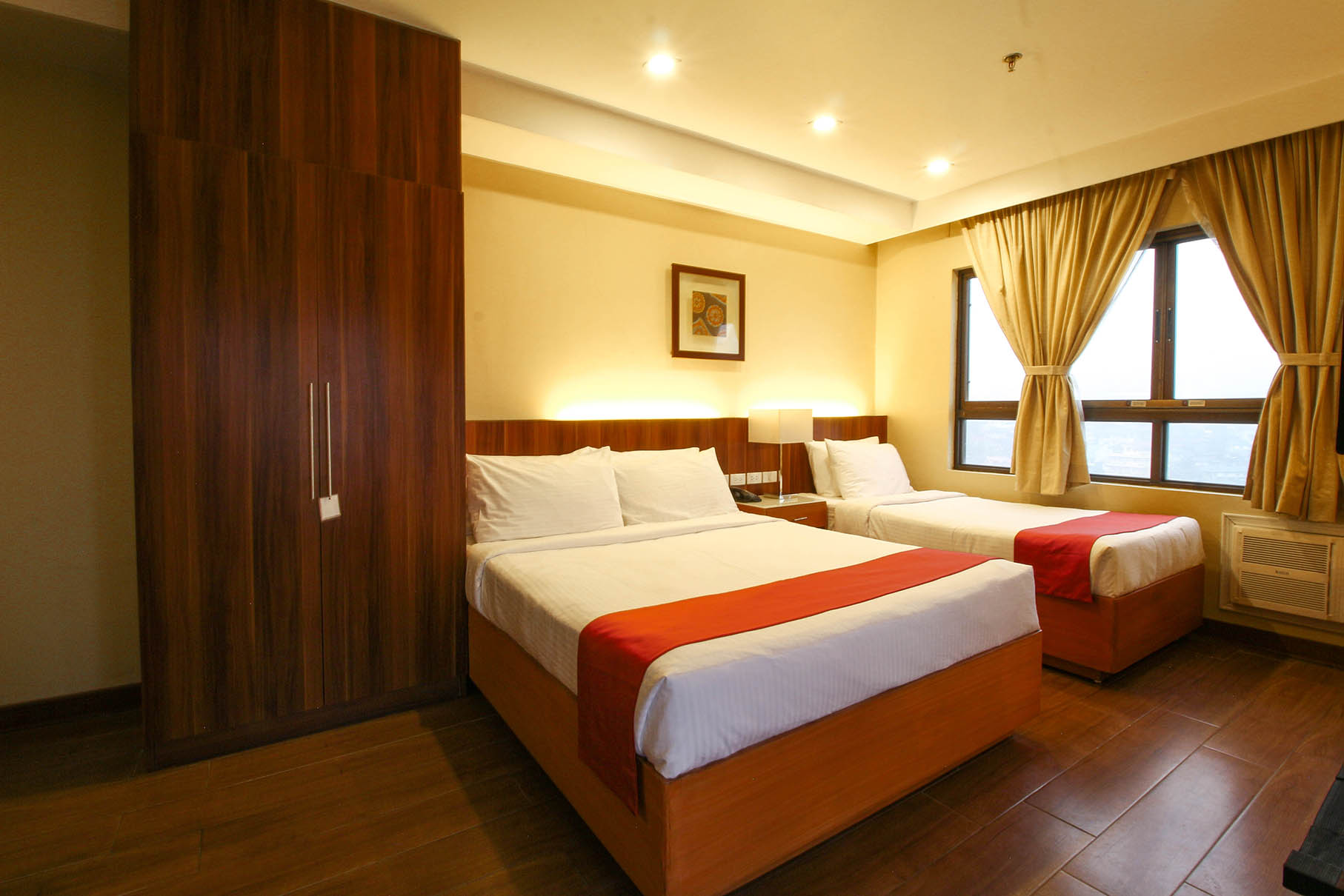 - Amenities: Air-Conditioning, Free Wi-Fi, Hair Dryer, Perculator, Refrigerator, Safe, Shower, TV